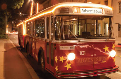 Die Kirche bietet traditionell Räume zur Besinnung an. Auch mit dem Bus sollen Insassen wie Passanten zum Innehalten, Staunen und Nachdenken animiert werden, schreibt der «Landbote». Jeweils wenn es eindunkelt und die Weihnachtsbeleuchtung in der Winterthurer Altstadt zu strahlen beginnt, hebt der rot-silberne, festlich geschmückte und beleuchtete Adventsbus die Stromabnehmer an. Er fährt an sechs Mittwoch- und Samstagnachmittagen eine gut halbstündige Route durch die Stadt. Die Mitfahrt ist gratis. Die Adventsbus-Passagiere benötigen aber eine Platzkarte.