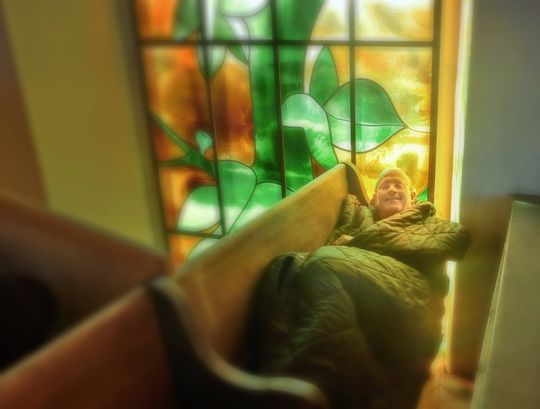 Pfarrer schläftUngewöhnliche Aktion in der Kirche zum AmtsantrittDer Pfarrer schläft… in der Kirche. Mit dem YouTube-Clip «Pfarrer zieht um» kündigte Werner Näf sein neues Zuhause auf kreative Weise an: «Wird der Pfarrer eine Woche in der Kirche überleben? Immerhin fehlt ihm seine Frau, der grosse Touch-Bildschirm im Büro, die Schoggi im Kühlschrank und noch viel mehr. Ihr erfahrt es ab Pfingstmontag – jederzeit in der Gächlinger Kirche.» Vom 5. bis zur Kafi-Chile vom 11. Juni wohnte der Pfarrer im Kirchenraum der Gächlinger Kirche. Jeden Tag war offene Tür. So wurde die Gächlinger Kirche zum Start der Amtszeit gleich auch zur Pfarrwohnung. «Selbst der reformierte Pfarrer schläft in der Kirche ein – das aber ganz bewusst», berichten die «Schaffhauser Nachrichten». Am Pfingstmontag hat Pfarrer Werner Näf sein Domizil in die Kirchenräume verlegt. In dieser Woche schlief, arbeitete, kochte und ass der 56-Jährige Familienvater von vier erwachsenen Kindern in der Kirche. Nur zum Duschen suchte er sein Zuhause auf – seit Jahren lebt er mit seiner Familie in Gächlingen. Zwischen den Kirchenbänken hatte er seine Matratze und seinen Schlafsack deponiert. Mit seiner Aktion verwandelte er die Kirche zum lebendigen Begegnungsort. Er amtet erst seit dem 1. Juni als reformierter Pfarrer in Gächlingen. Am Abend sorgte nur eine kleine Leselampe in seinem neuen und gigantischen Schlafzimmer für Licht. «Das ist eine spezielle Atmosphäre. Besonders schön ist es am Morgen, wenn die Sonnenstrahlen die farbigen Kirchenfenster beleuchten», schwärmt Näf gegenüber den «Schaffhauser Nachrichten».
